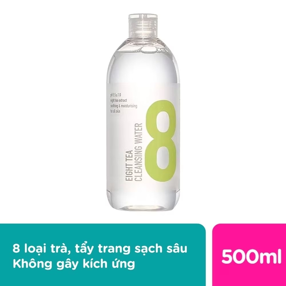 Bom Eight Tea Cleansing Water 500ml used for all skin types.