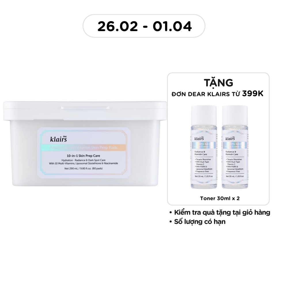 Dear, Klairs Freshly Juiced Vitamin Skin Prep Pads 290ml/60pcs
