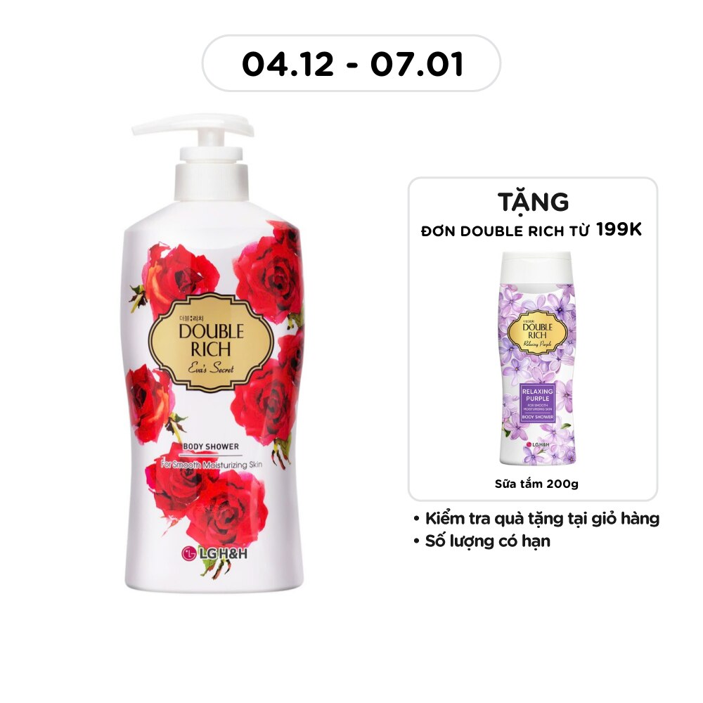 - Double Rich Eva's Secret Body Shower 800g with natural essence rich in Vitamin E and roses helps nourish and balance moisture for healthy, beautiful and vibrant skin.