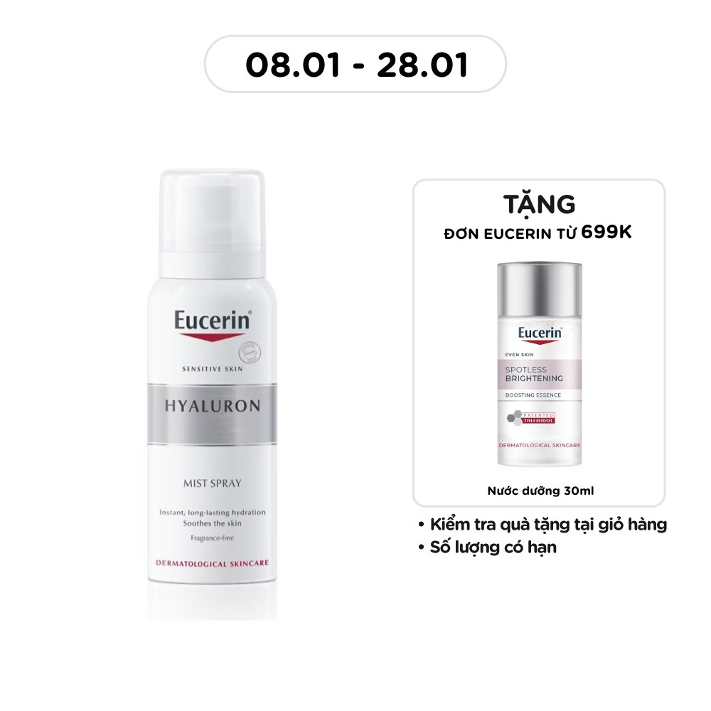 • Eucerin Hyaluron Mist Spray 50ml is a facial mist spray with Hyaluronic Acid and Gluco-Glycerol that supports instant and long-lasting hydration for smooth and radiant skin.