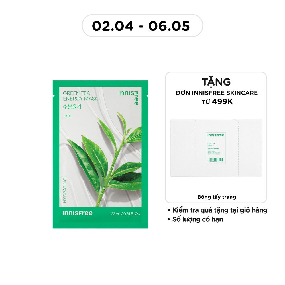 Innisfree Green Tea Energy Mask 22ml is a mild daily sheet mask filled with the freshness of the ingredients intact, for immediate hydration of tired skin to hydrate and soothe skin that has fluctuating conditions.