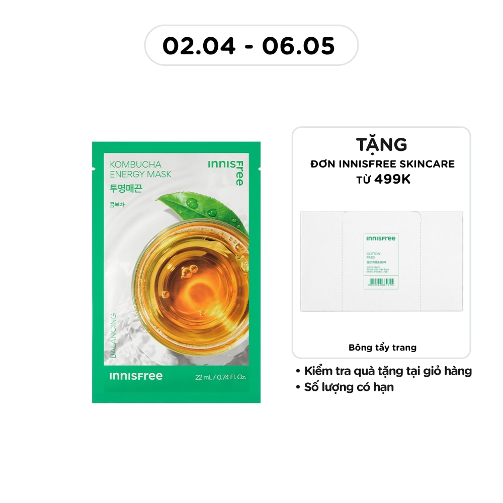 Innisfree Kombucha Energy Mask 22ml is a mild daily sheet mask filled with the freshness of the ingredients intact, for immediate hydration of tired skin to hydrate and soothe skin that has fluctuating conditions.