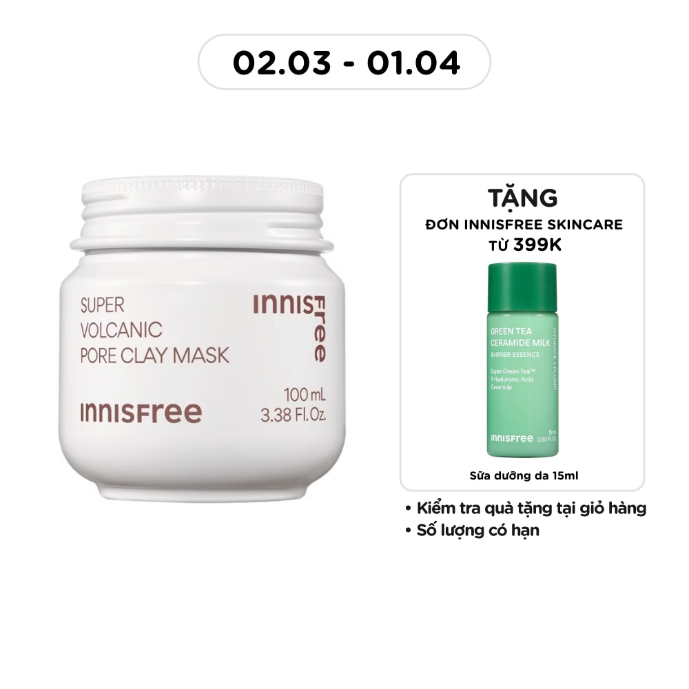innisfree Super Volcanic Pore Clay Mask 100ml is a wash-off, cooling clay mask with Volcanic Clusters and AHA that helps control excess sebum and visibly minimize pores while providing skin-smoothing exfoliation.