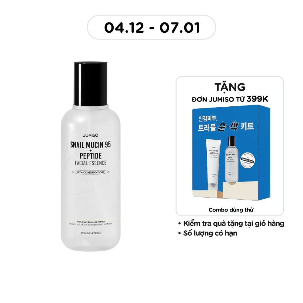 Jumiso Snail Mucin 95 + Peptide Facial Essence 140ml is a rich face essence that moisturizes and nourishes skin while providing anti-aging benefits. Containing 95% snail mucus filtrate and water, it helps moisturize the skin and strengthen the skin barrier.