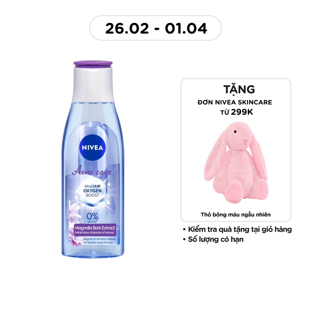 - Nivea Acne Care Make Up Clear Cleansing Water 200ml has Advanced Micellar Technology and 0% Alcohol to deeply remove dirt, oil and even waterproof makeup without stripping moisture.