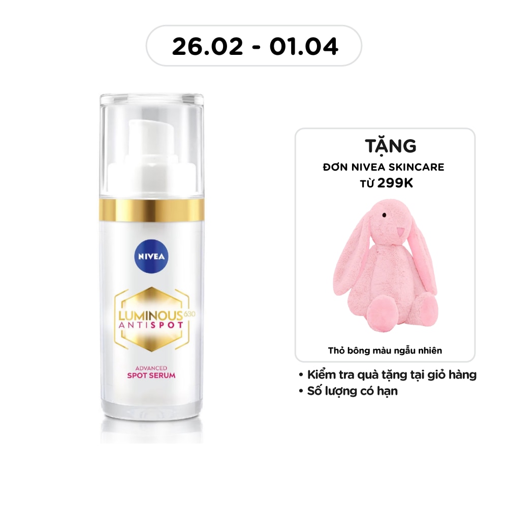 - Nivea Luminous 630 Spotclear Intensive Treatment Serum 30ml acts on existing pigmentation to lighten spots and reduce their size, while balancing new melanin production to prevent their reappearance, for even & luminous skin.
