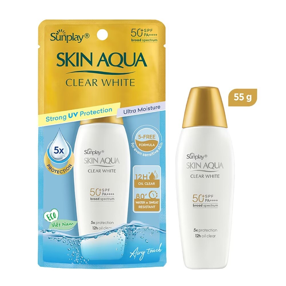 Sunplay Skin Aqua Clear White SPF50 55g used for all skin types.