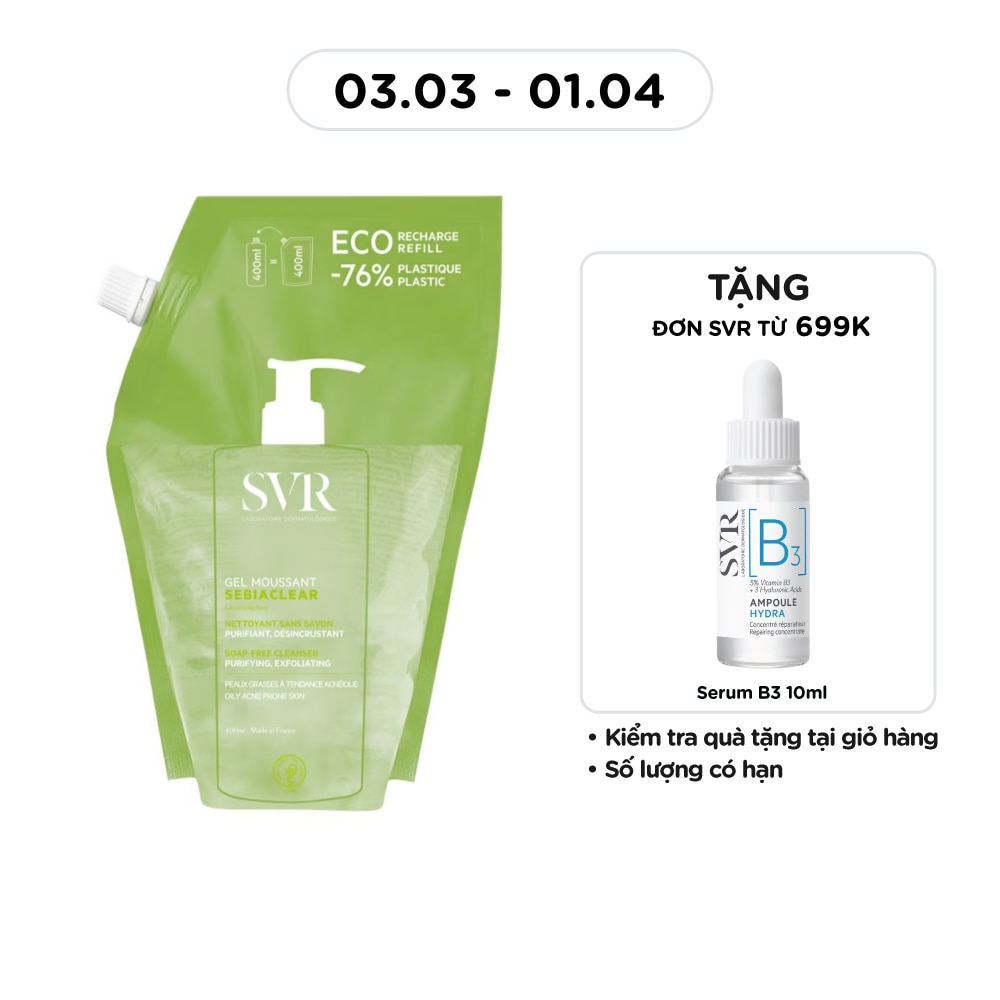 SVR Sebiaclear Gel Moussant Refill 400ml used for sensitive acne-prone skin and combination to oily skin.