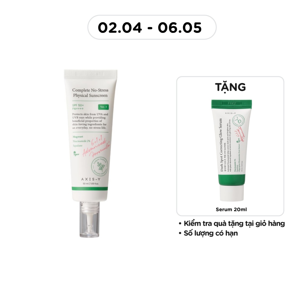 Kem Chống Nắng Vật Lý Dịu Nhẹ AXIS-Y Complete No-Stress Physical Sunscreen SPF50+ PA++++ 50ml