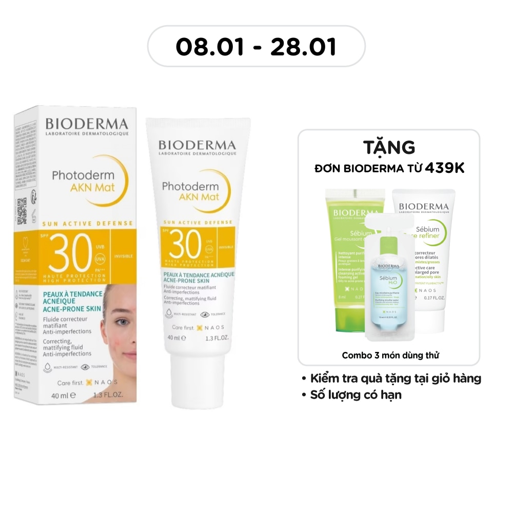 Kem Chống Nắng Bioderma Photoderm AKN Mat SPF30 Kiểm Soát Dầu Dành Cho Da Hỗn Hợp & Da Dầu 40ml