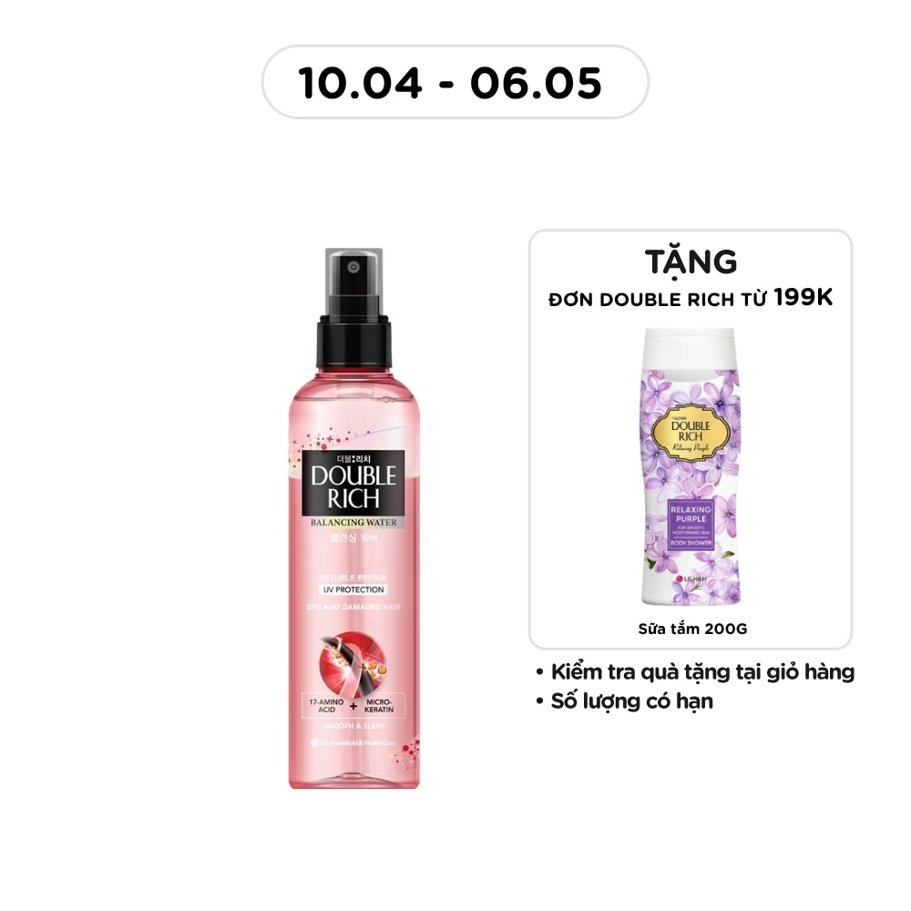 Nước Dưỡng Tóc Double Rich Phục Hồi (Hồng) 250ml là sản phẩm chăm sóc cần thiết dành cho tóc khô và hư tổn, với công thức độc đáo giúp bạn bảo vệ mái tóc khỏi tia UV và nhanh chóng có được mái tóc suôn mềm và óng mượt như ý.