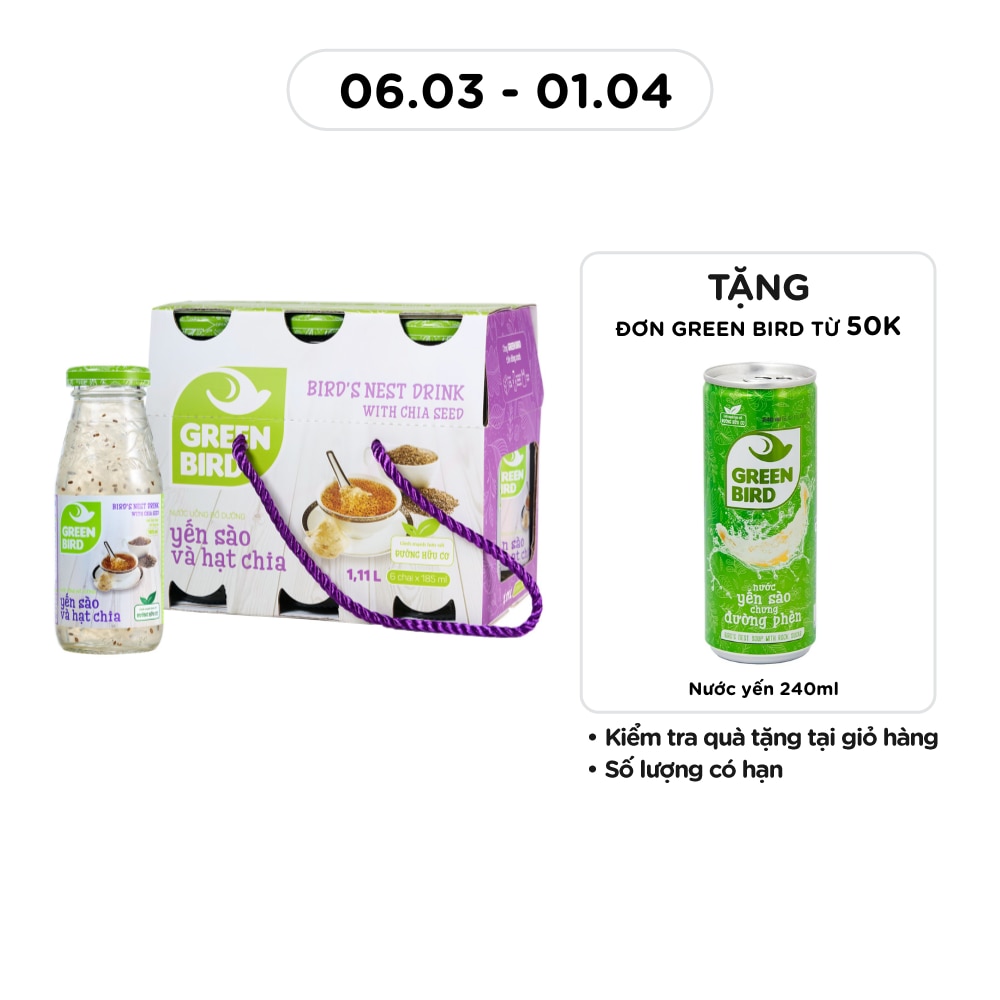 Nước Uống Bổ Dưỡng Green Bird Yến Sào Và Hạt Chia 185mlx6Pcs