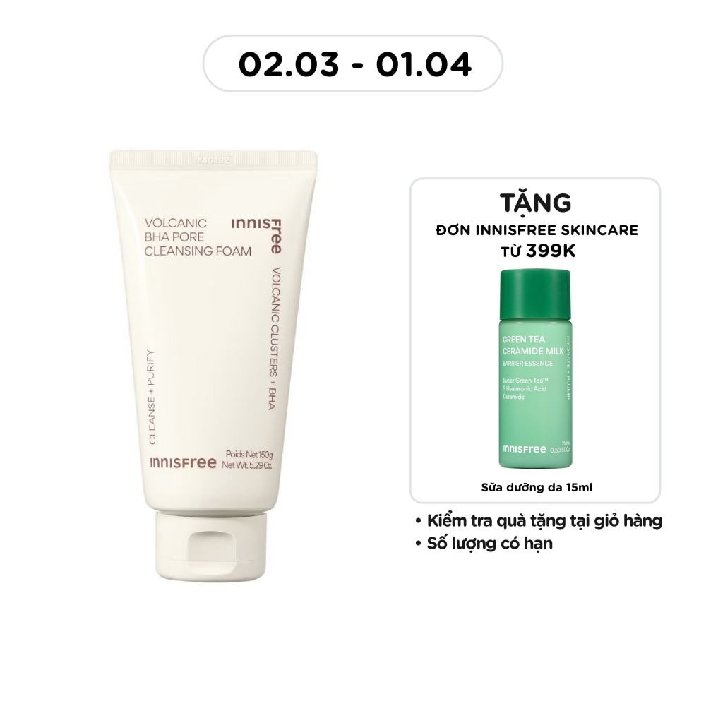 - Sữa Rửa Mặt innisfree Se Khít Lỗ Chân Lông Volcanic Pore BHA Cleansing Foam 150g làm sạch sâu lỗ chân lông loại bỏ bã nhờn, làm sạch và se khít lỗ chân lông mang lại làn da sạch sẽ và tươi sáng.