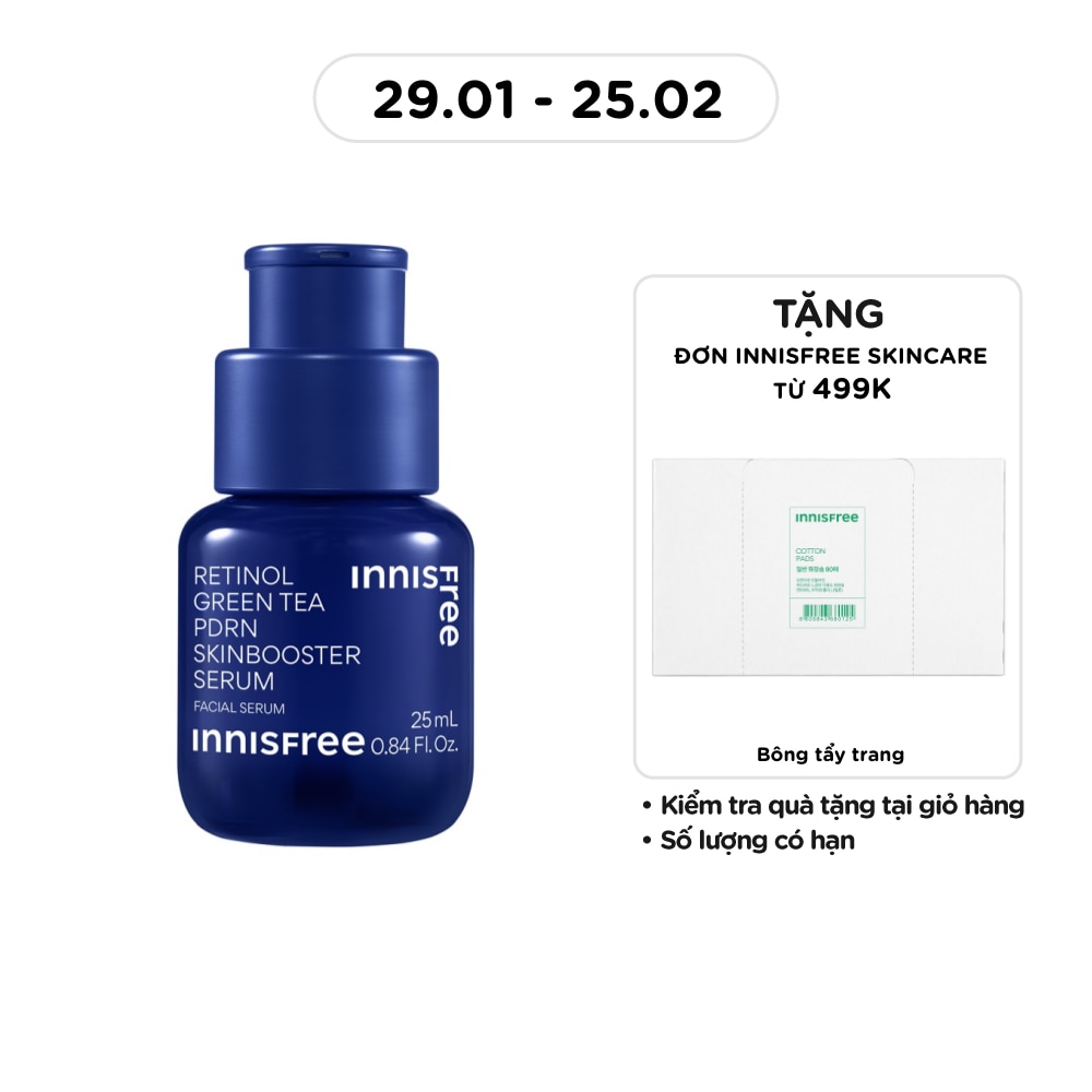 - Tinh Chất innisfree Căng Bóng, Đàn Hồi Retinol Green Tea PDRN Skinbooster Ampoule 25ml giúp giảm dấu hiệu lão hóa, dưỡng ẩm sâu và làm dịu da.