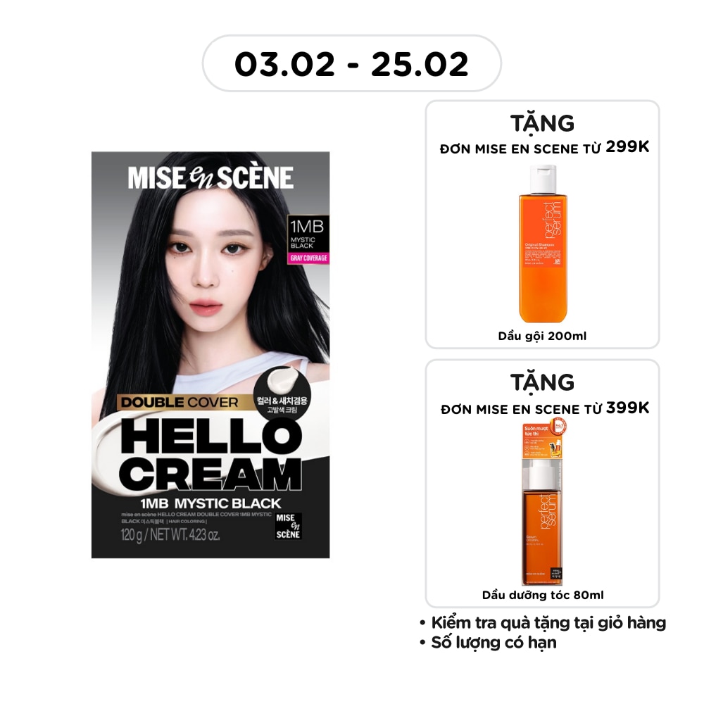Kem Nhuộm Tóc Phủ Bạc mise en scène Hello Cream Double Cover 120g .#1MB Đen Tuyền
