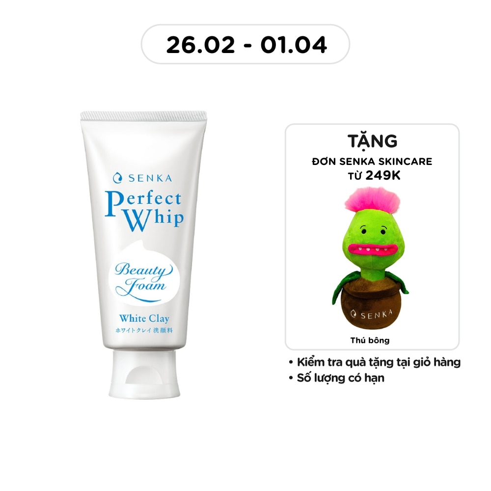 - Sữa Rửa Mặt Tạo Bọt Senka Perfect White Clay với đất sét trắng giúp loại bỏ tế bào chết, cho làn da sáng rạng rỡ, đều màu.