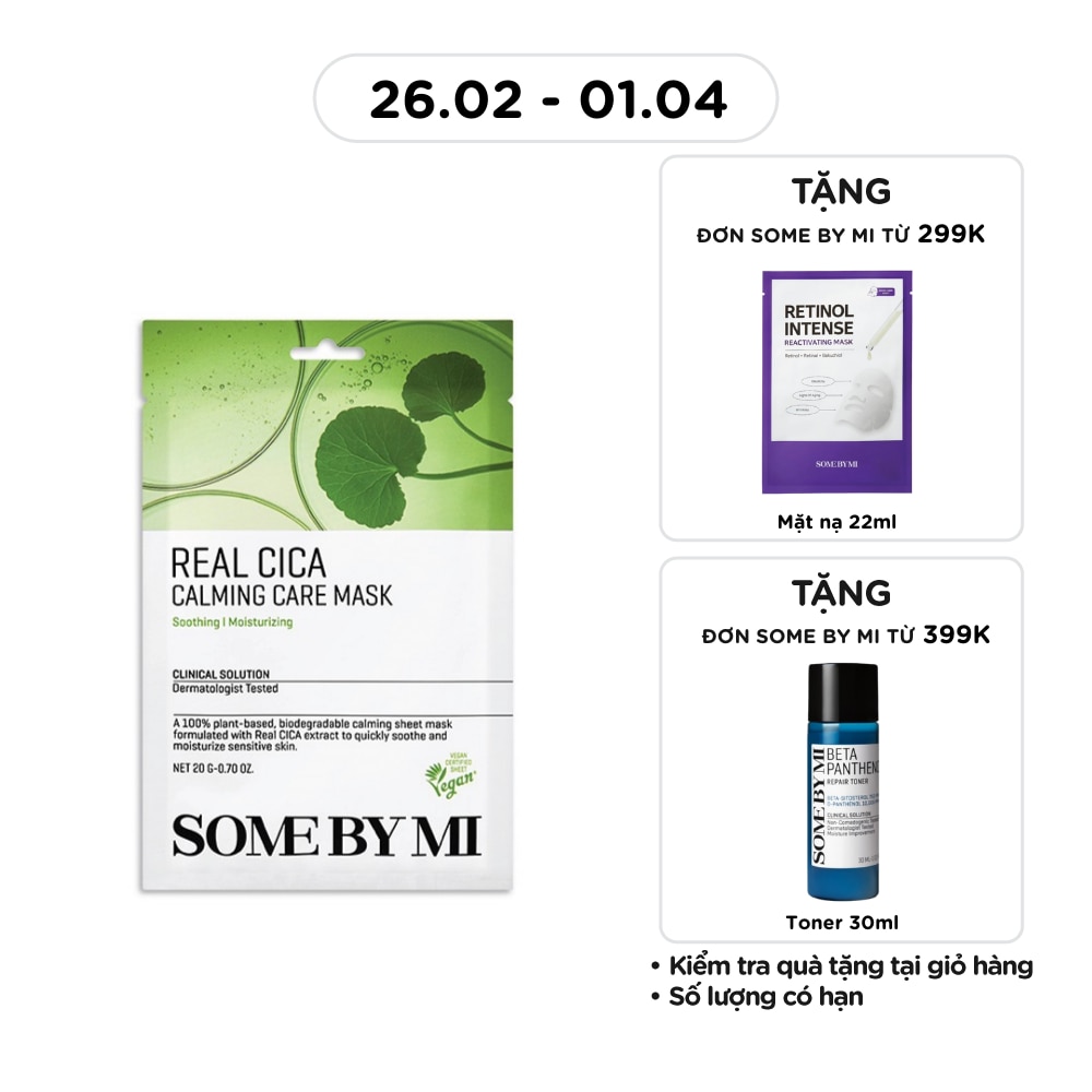 - Mặt Nạ Giấy Some By Mi Chiết Xuất Rau Má Real Cica Calming Care Mask 20g với các hoạt chất như Madecassoside giúp giảm viêm và làm lành da, kích thích sản xuất collagen làm săn chắc và giảm hình thành các nếp nhăn.