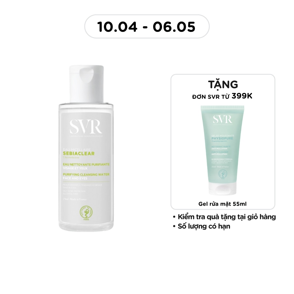 - Nước Tẩy Trang Làm Giảm Mụn SVR Sebiaclear Eau Micellaire với công thức mới giúp làm sạch hiệu quả, giảm mụn rõ rệt và an toàn với làn da bạn.
