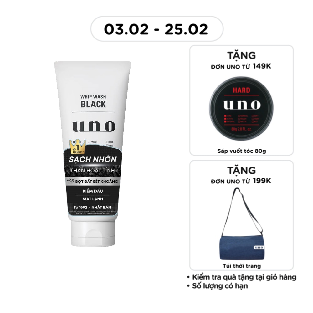 - Sữa Rửa Mặt UNO Tạo Bọt Sạch Nhờn 130g kết hợp sức mạnh của than hoạt tính giúp làm sạch bã nhờn, bụi bẩn sâu bên trong lỗ chân lông và tế bào chết mang lại làn da sạch sâu, hạn chế dầu & ngăn ngừa mụn.